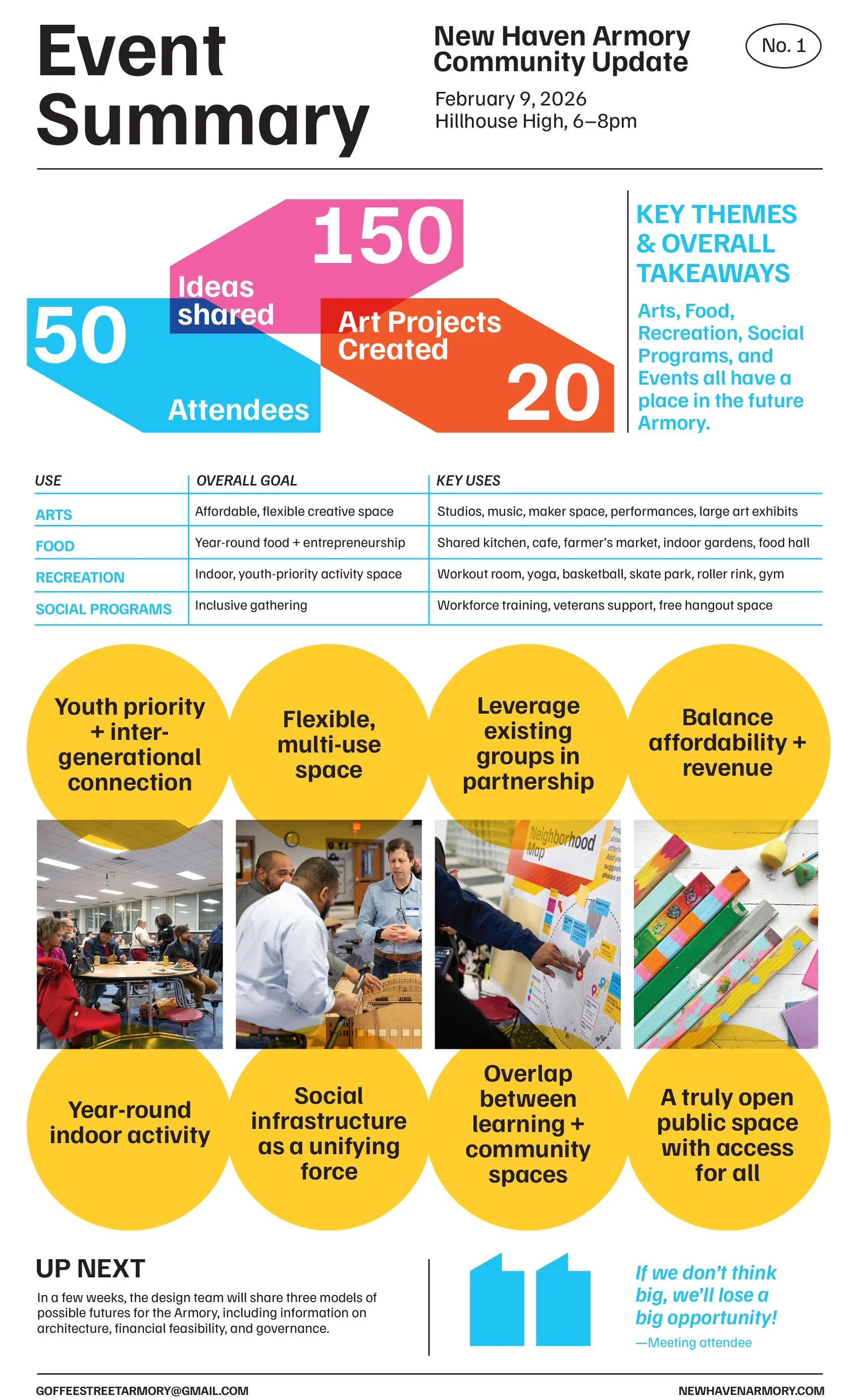 Hundreds of New Haveners have participated in public meetings over the past three years, generating dozens of ideas, hopes, and dreams for the future of the Armory.